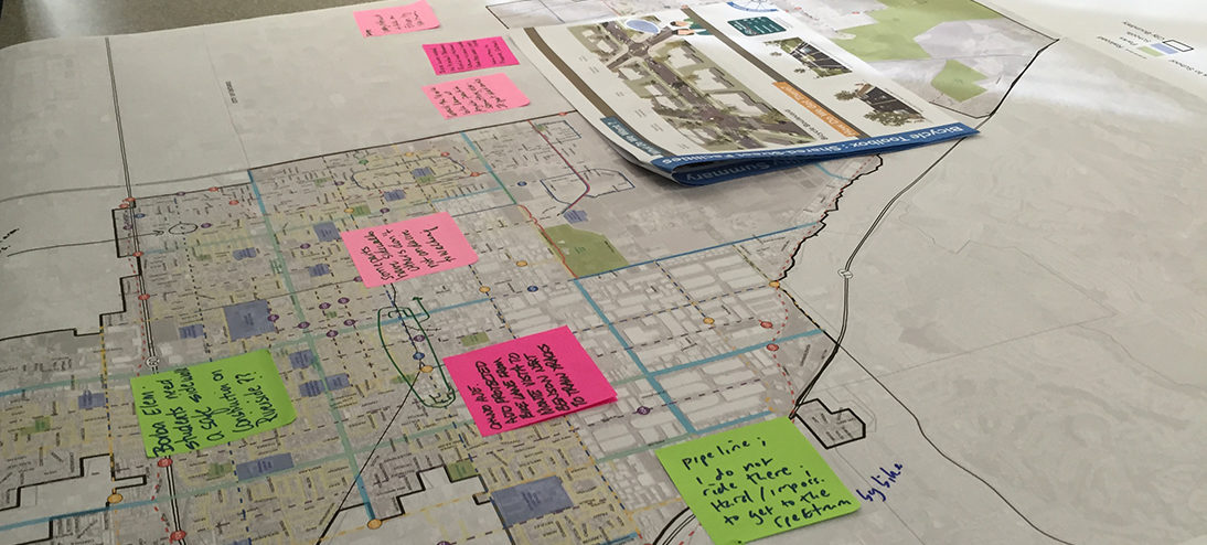 During this process, KTUA developed a GIS-based Neighborhood Greenway Tool that looked at factors such as street classification and speed to derive connections between activity centers such as schools and parks. Because of the City’s predominantly grid street network, the tool quickly identified streets that initially met the criteria for bicycle boulevards, or neighborhood greenways. Through this initial analysis, the city refined the network to streets that were already planned as shared streets or make multiple connections along the route. This provided a quick data driven approach to identifying streets that may have not surfaced through analysis or the public outreach process.